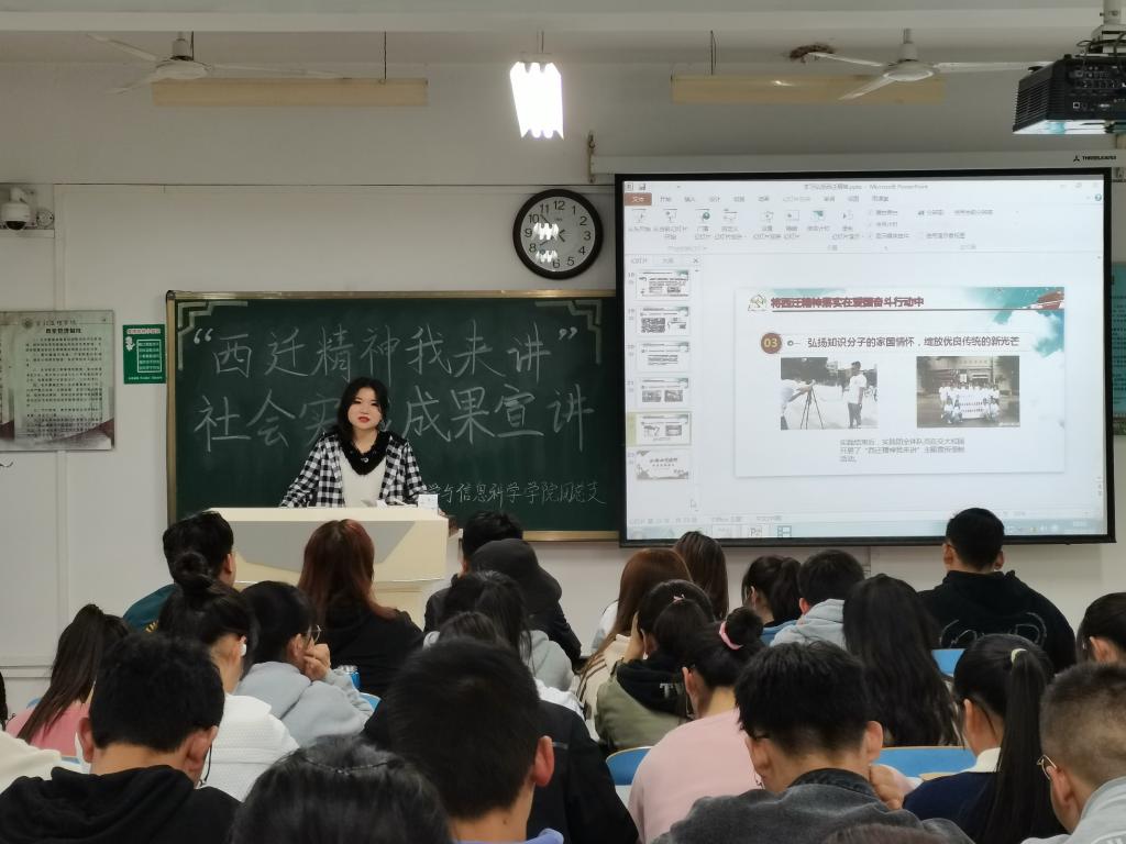 为深入贯彻习近平总书记来陕考察重要指示精神,激发青年师生爱党爱国爱社会主义的热情,牢记党中央对广大知识分子的嘱托,不忘初心使命,以理论学习和社会实践相结合,将西迁精神落实在爱国奋斗行动之中,引导青年学生听党话、跟党走。10月20日,我院邀请“弘扬西迁精神,矢志爱国奋斗”学习实践团成员、历史文化与旅游学院刘译阳同学,在思贤楼328教室开展“弘扬西迁精神、矢志爱国奋斗”主题宣讲活动。我院部分学生干部、学生代表参加了本次宣讲活动。