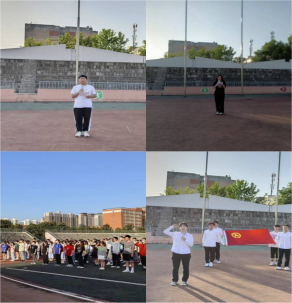 早晨六点半,升国旗仪式正式开始。国旗护卫队步伐铿锵有力、整齐划一。在庄严的国歌声中,五星红旗冉冉升起。十四运会和残特奥会省级优秀志愿者2020级统计学1班学生曹红宝以《高瞻远瞩,以学促学》为题做了国旗下演讲,号召全体同学们在奉献中成长,立志成才。2019级数学与应用数学2班团支书杜雯为大家讲授《忆百年之团史,创青春之华章》主题微团课,带领大家回顾了百年团史,激励青年学子用奋斗书写青春华章。团员代表韩钰馨带领大家重温入团誓词,唤起了每一位团员的不辱使命、永葆先进的团员意识。团日活动在青春激昂的团歌声中落下帷幕。李萍在总结中讲到,希望同学们树立坚定理想信念,练就过硬本领,严守学校纪律,强化使命担当。