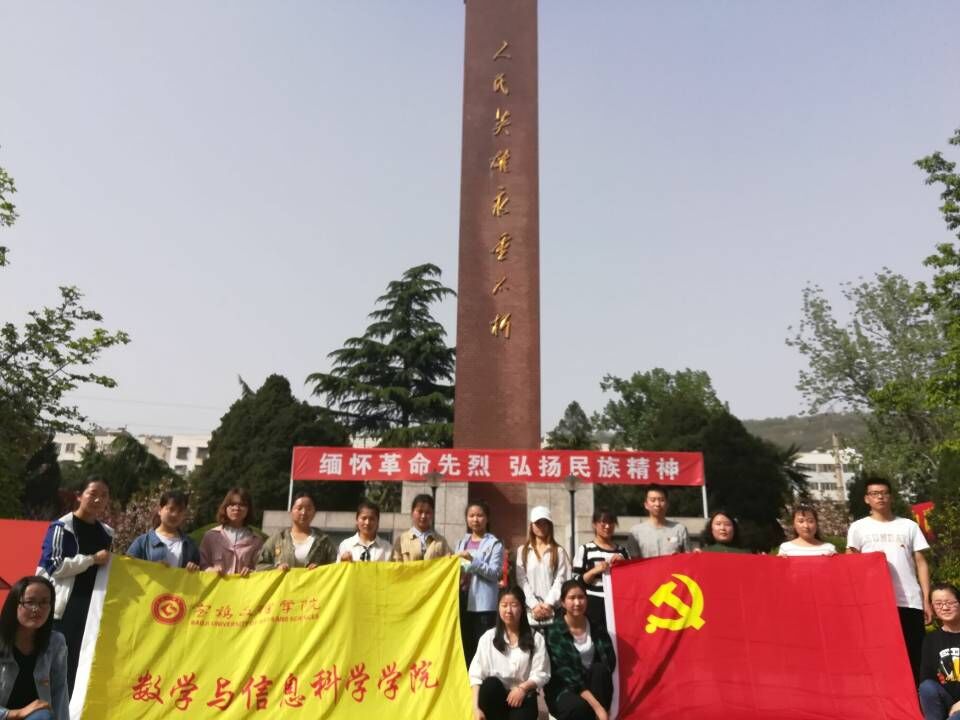 清明节是我国传统节日,也是最重要的祭祀节日。为了缅怀先烈,对学生党员进行革命传统教育。4月3日,数学与信息科学学院学生党支部书记赵川、张文婧老师带领学生支部18名党员赴宝天铁路英烈纪念馆,开展了以“缅怀先烈砥砺前行”为主题的党日活动。