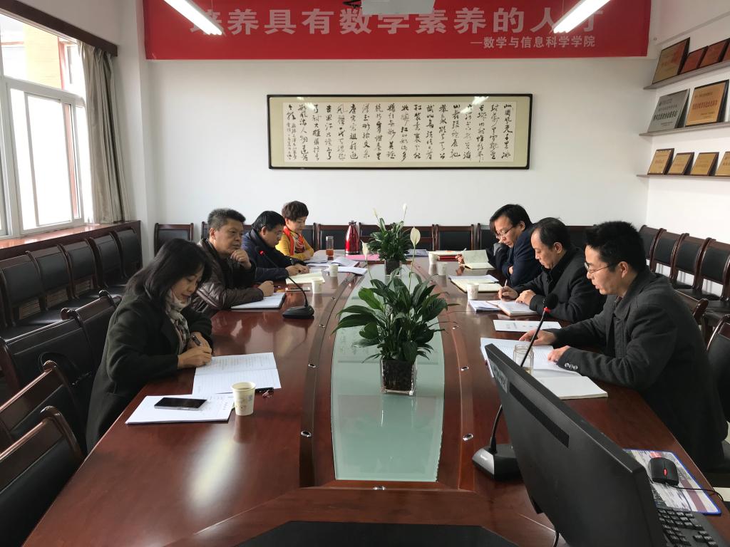 会上,数学与信息科学学院党总支书记郝满义代表班子成员汇报了学院各项工作的整体情况和党风廉政建设工作情况,院长李剑汇报了学院师资结构和专业设置等情况,副书记王欢和副院长刘淳安分别汇报了学生工作和教学工作情况。