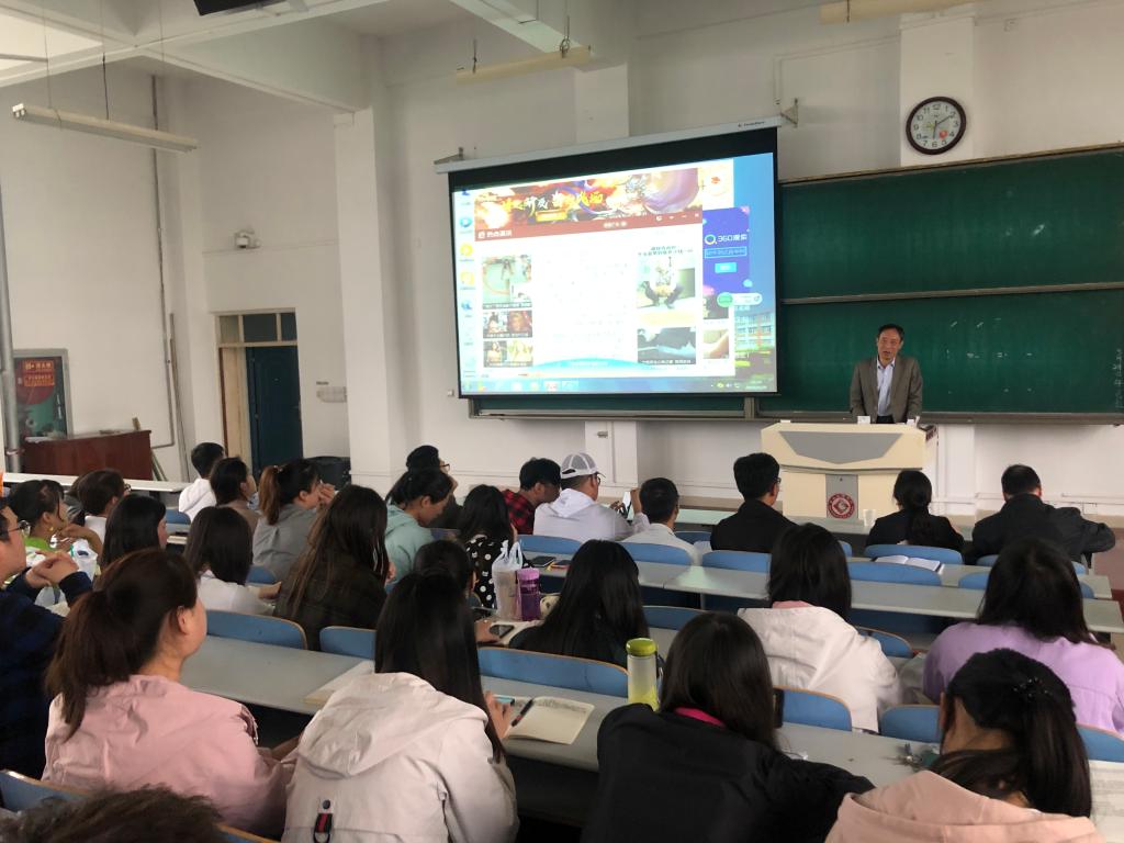 5月29日下午,学院在思贤楼420教室举办2018年“两会”精神宣讲会,邀请学校党委委员、党委统战部部长、“两会”宣讲团成员彭志启教授作了题为《用2019“两会”和全国教育大会精神统一思想和行动》的专题报告。会议由学院党总支书记郝满义主持,学生辅导员、全体学生党员和入党积极分子参加了宣讲会。