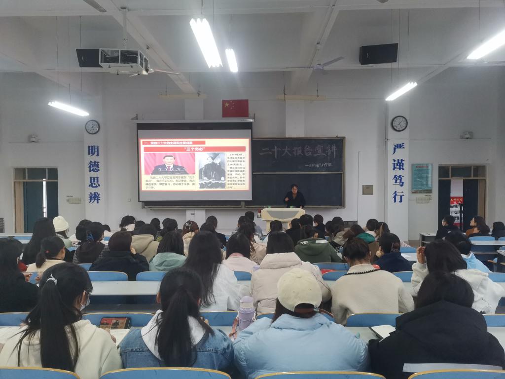 王红梅深入阐释了党的二十大的主题和主要成果、过去5年的工作以及新时代10年伟大变革中的3件大事、16个历史性成就、4个里程碑意义。从马克思主义中国化时代化、中国式现代化、全面建设社会主义现代化国家的目标任务、坚持党的全面领导和全面从严治党、应对风险挑战等五个方面对党的二十大提出的新思想新论断、作出的新部署新要求作了宣讲。报告主题鲜明,亮点突出、联系实际,通俗易懂,深入浅出。在场师生表示,此次宣讲接地气,易理解,有深度。