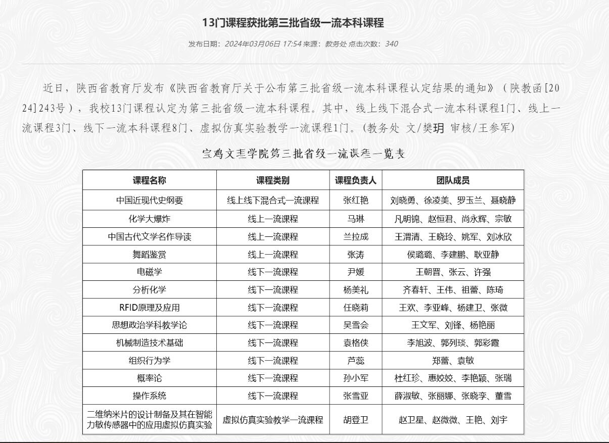 近日,陕西省教育厅发布《陕西省教育厅关于公布第三批省级一流本科课程认定结果的通知》(陕教函[2024]243号),我院孙小军教授课程团队申报的《概率论》课程认定为第三批省级一流本科课程(线下一流本科课程)。