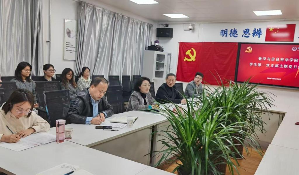 10月24日下午,数学与信息科学学院学生第一党支部在思贤楼424会议室开展了主题党日活动。校党委副书记、纪委书记、监察专员沙红梅应邀参加活动。