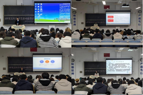 11月10日,我院于高新校区思贤楼408教室开展“研究生与本科生面对面交流”活动。活动邀请研究生代表张书月、刘李月、鲁蕊姣分享备考研究生的经验。2024级本科生共150余人参加了活动。