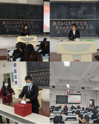 第十四次学生代表大会、第二次研究生大会的胜利召开是我院青年学生政治生活的一件大事,也是学生会回顾历史、总结经验、规划未来的重要契机。全体代表不负众望,以饱满的政治热情和高度负责的精神,圆满完成了大会的各项任务。(数学与信息科学学院团总支供稿 文/高雨杰 图/卜茹心 审核/李萍)