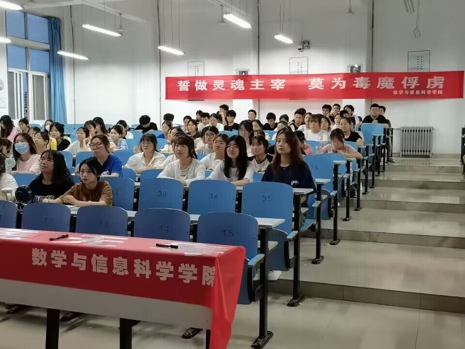 6月28日晚,数学与信息科学学院在思贤楼420教室开展了“禁毒宣传教育”活动,学生辅导员魏研及学生代表共计200余人参与了本次活动。