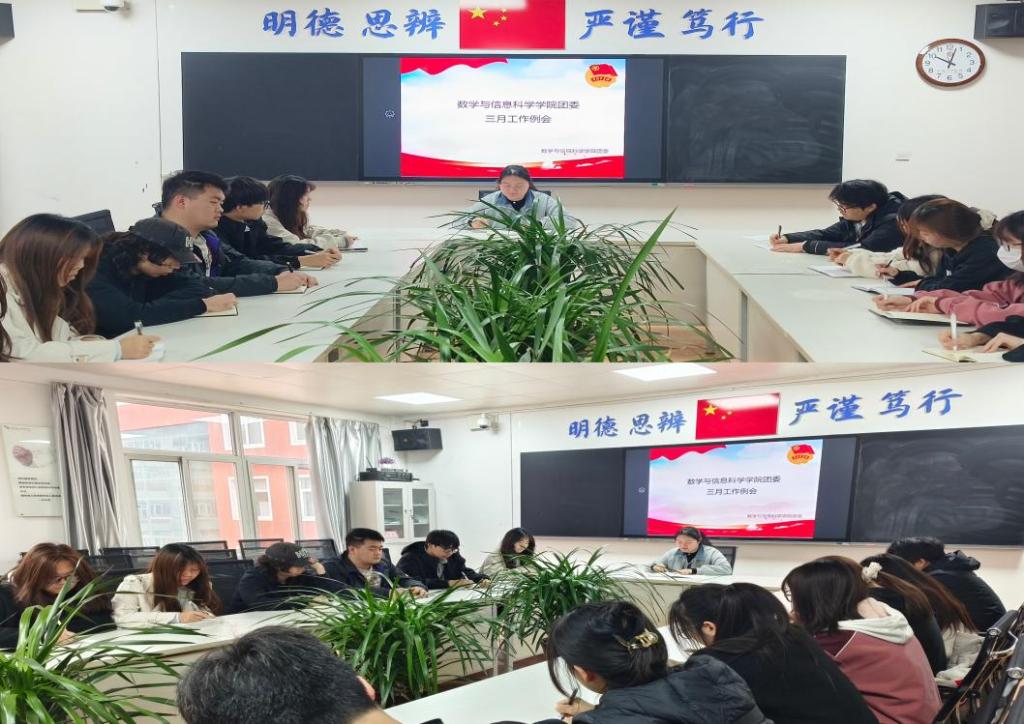 3月14日,数学与信息科学学院团委在思贤楼424召开团委学生会3月份工作例会。团委书记李萍、团委学生会各部门负责人参加会议。