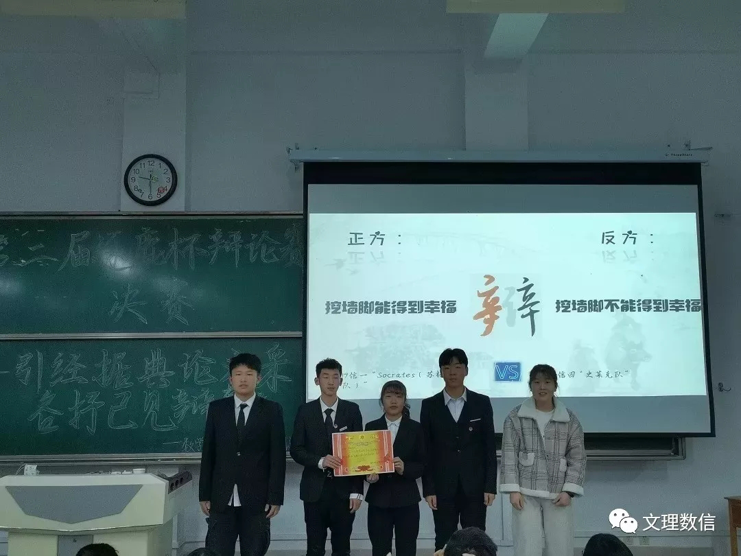 为了培养和锻炼同学们的逻辑思维能力和语言表达能力,提高同学们的团队协作能力与意识,数学与信息科学学院团总支于2019年11月17日晚在思贤楼408教室举办了以“引经据典论文采,各抒己见辩真知”为主题的第二届“逐鹿杯”辩论赛决赛。